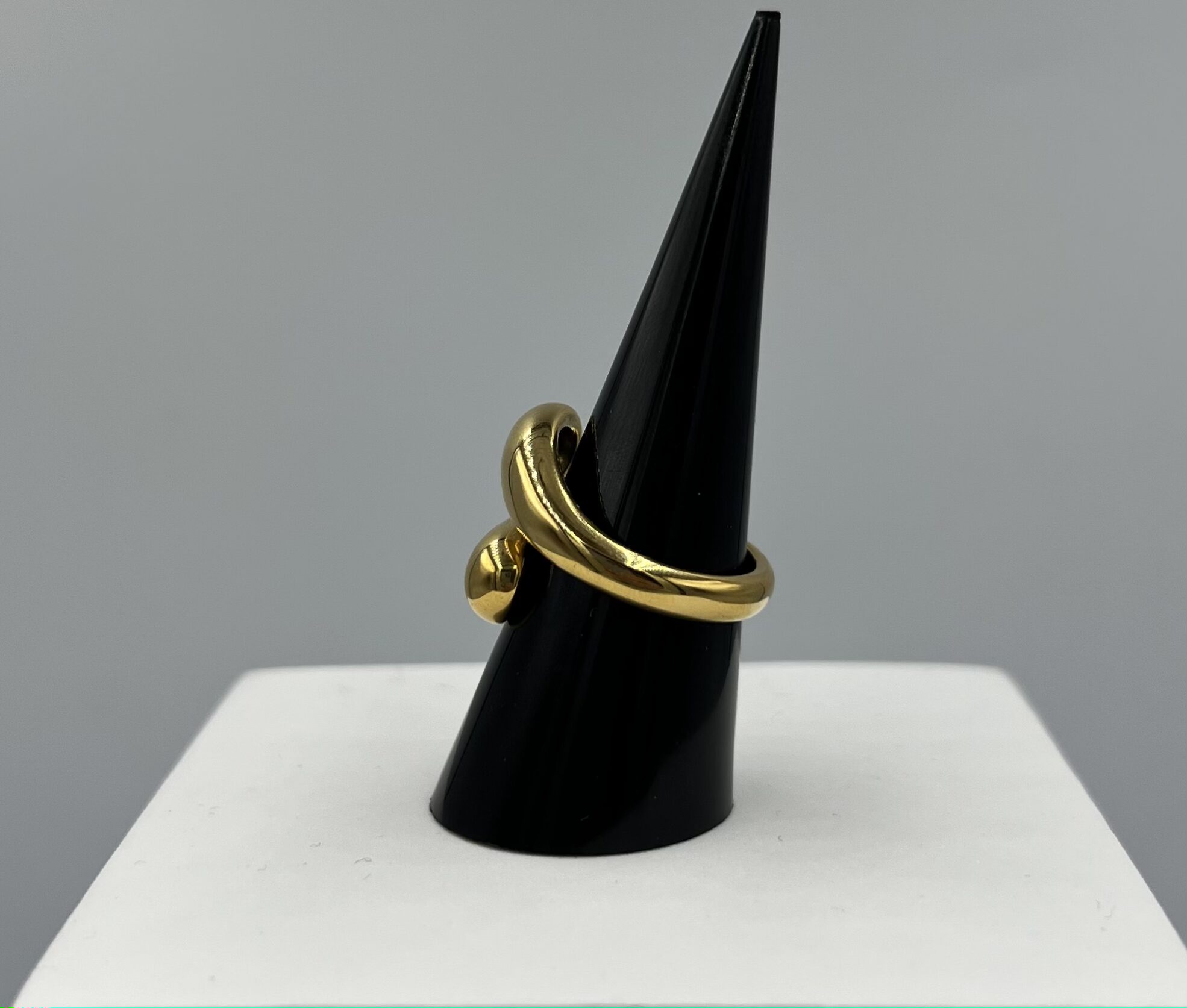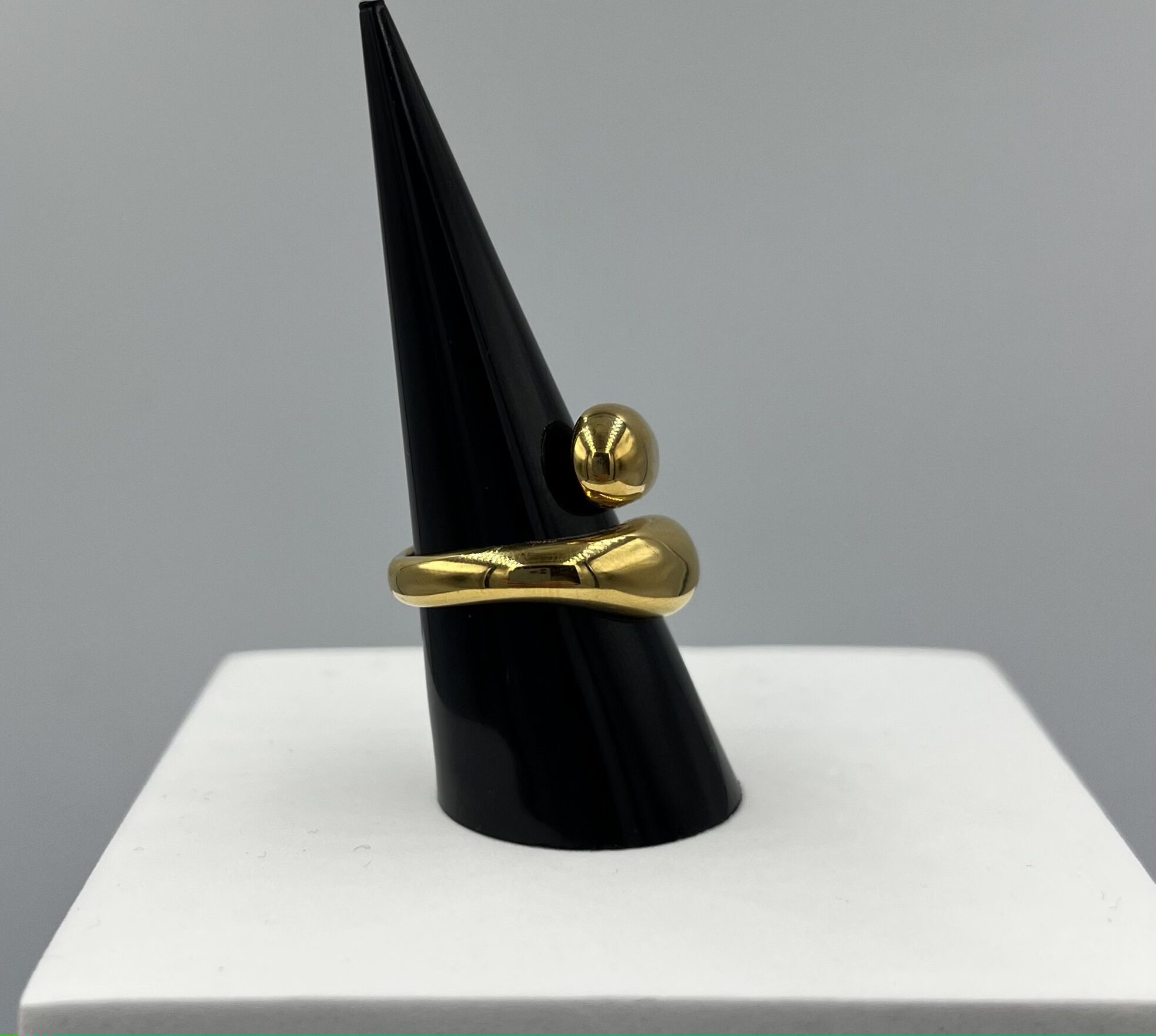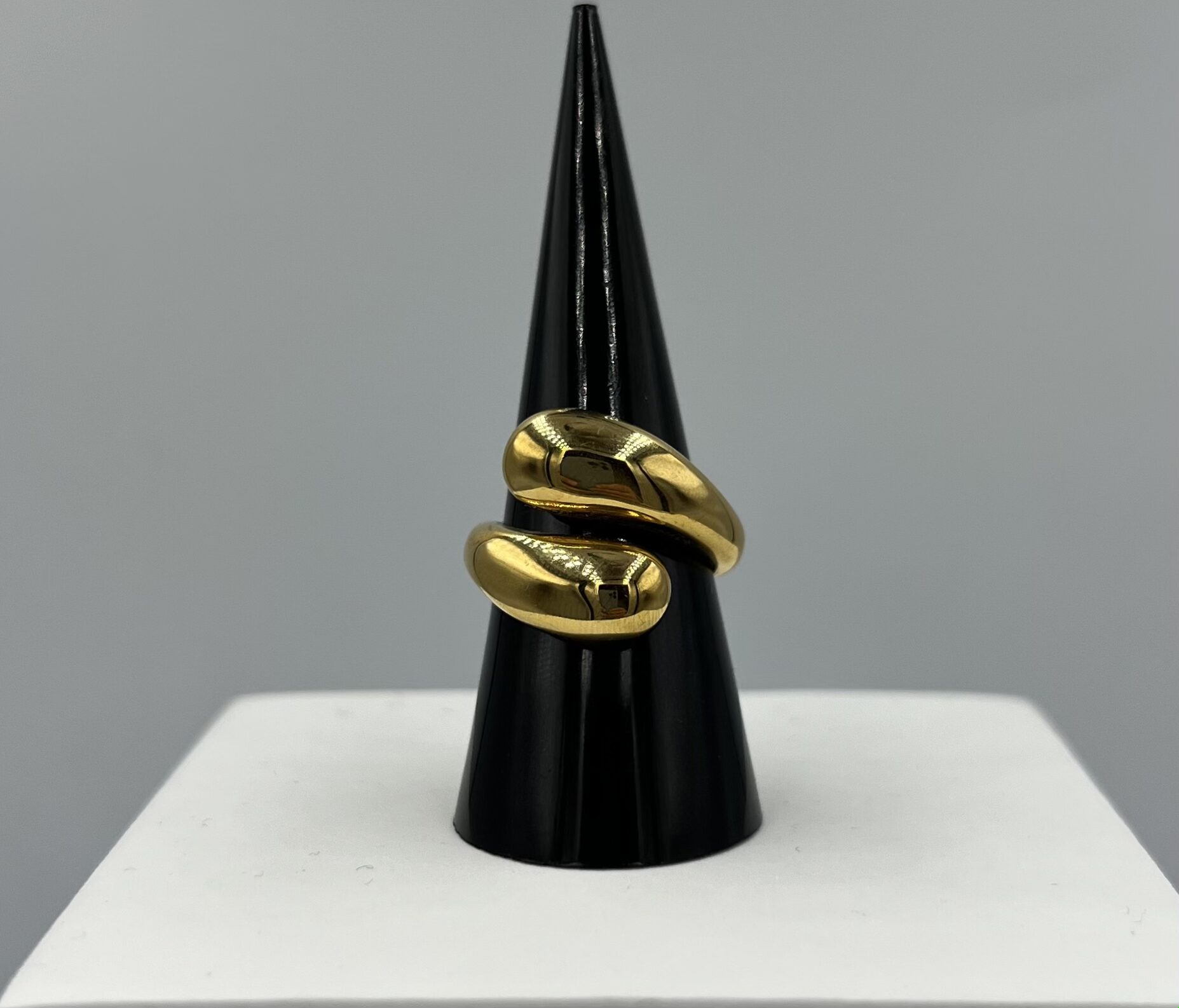 Sculpturale et captivante, la bague Aurum Flux en acier inoxydable doré se distingue par ses courbes fluides et audacieuses. Son anneau ouvert, aux extrémités arrondies et généreuses, évoque un mouvement organique, presque liquide, comme une goutte d’or en perpétuel flux.
