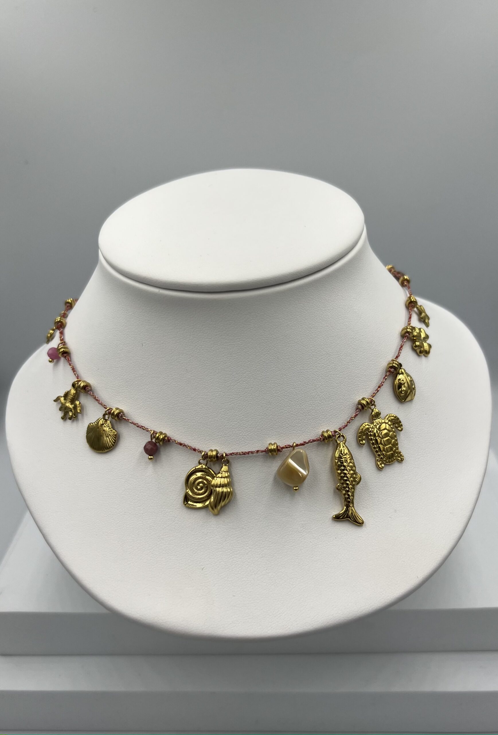 Ce collier en acier inoxydable doré est orné de petits pendentifs délicats disposés tout au long de la chaîne. Leur mouvement subtil capte la lumière à chaque geste, apportant une touche de modernité et de finesse. Robuste et raffiné, ce bijou se porte aussi bien seul pour un style épuré que superposé à d’autres colliers pour un effet tendance.