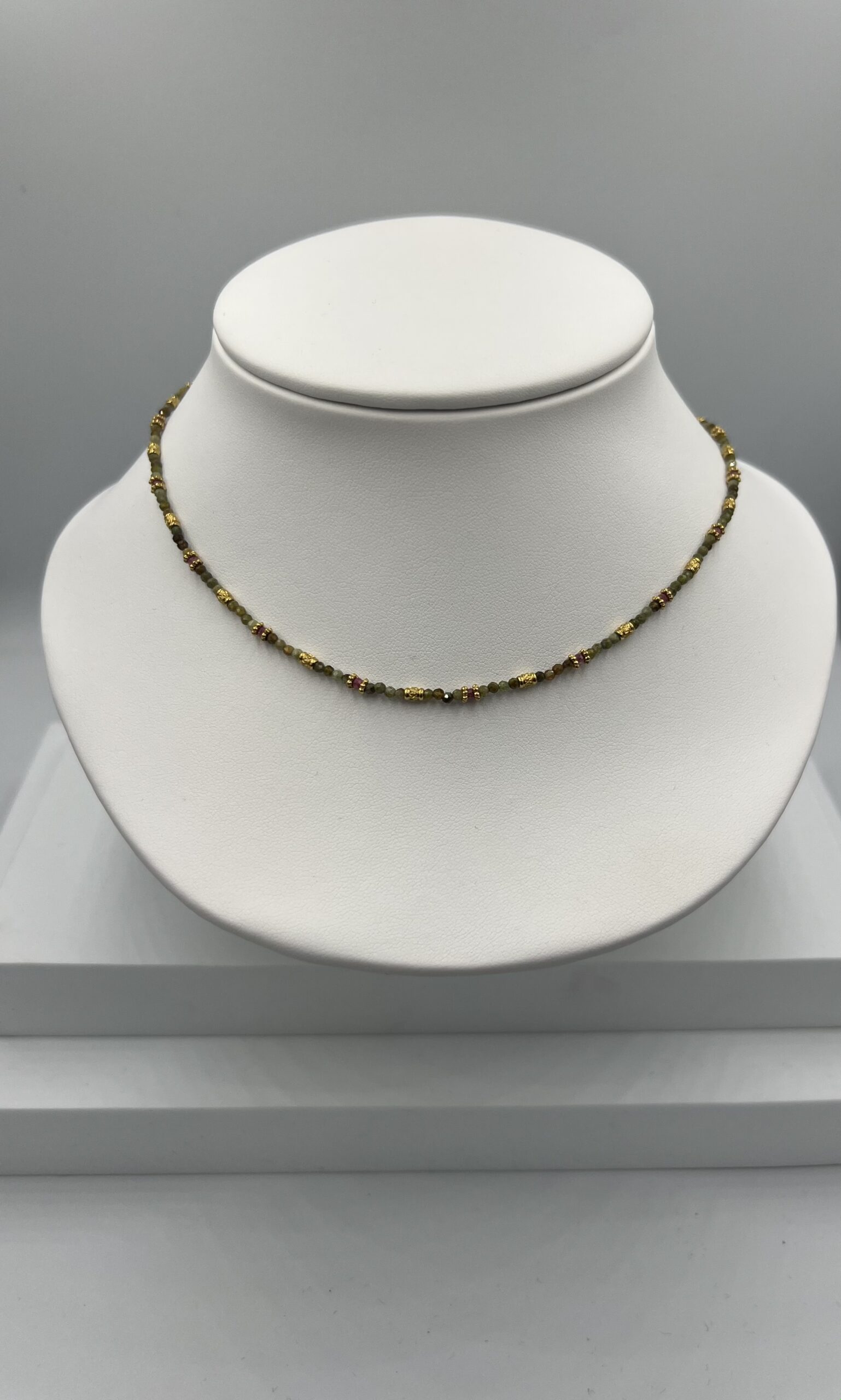 Élégant et raffiné, ce collier en acier inoxydable est sublimé par des pierres naturelles d’œil de tigre, accompagnées de petites pierres vertes et rouges. L’intensité chaude du brun doré de l’œil de tigre se marie harmonieusement avec les touches vertes et rouges, créant un contraste subtil et vivant qui apporte à ce bijou équilibre, vitalité et caractère. Son design intemporel en fait un accessoire parfait pour toutes les occasions, tout en restant résistant à l’eau et à l’oxydation.