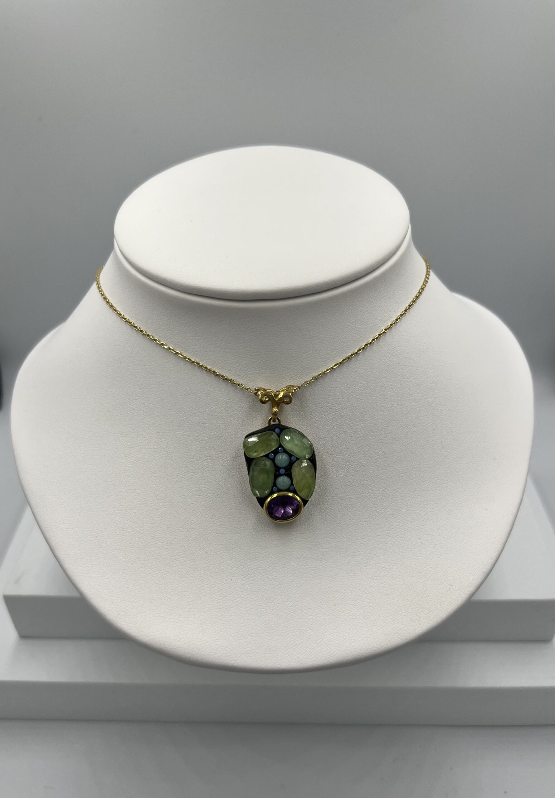 Élégant et raffiné, ce collier en argent 925 doré se distingue par un pendentif ovale orné de pierres naturelles : le vert lumineux du péridot et le violet profond de l’améthyste. L’association de ces deux gemmes crée un contraste harmonieux, symbolisant équilibre, vitalité et sérénité. Son design intemporel apporte une touche sophistiquée à toutes vos tenues, tandis que sa conception en argent 925 doré garantit durabilité et éclat au fil du temps.